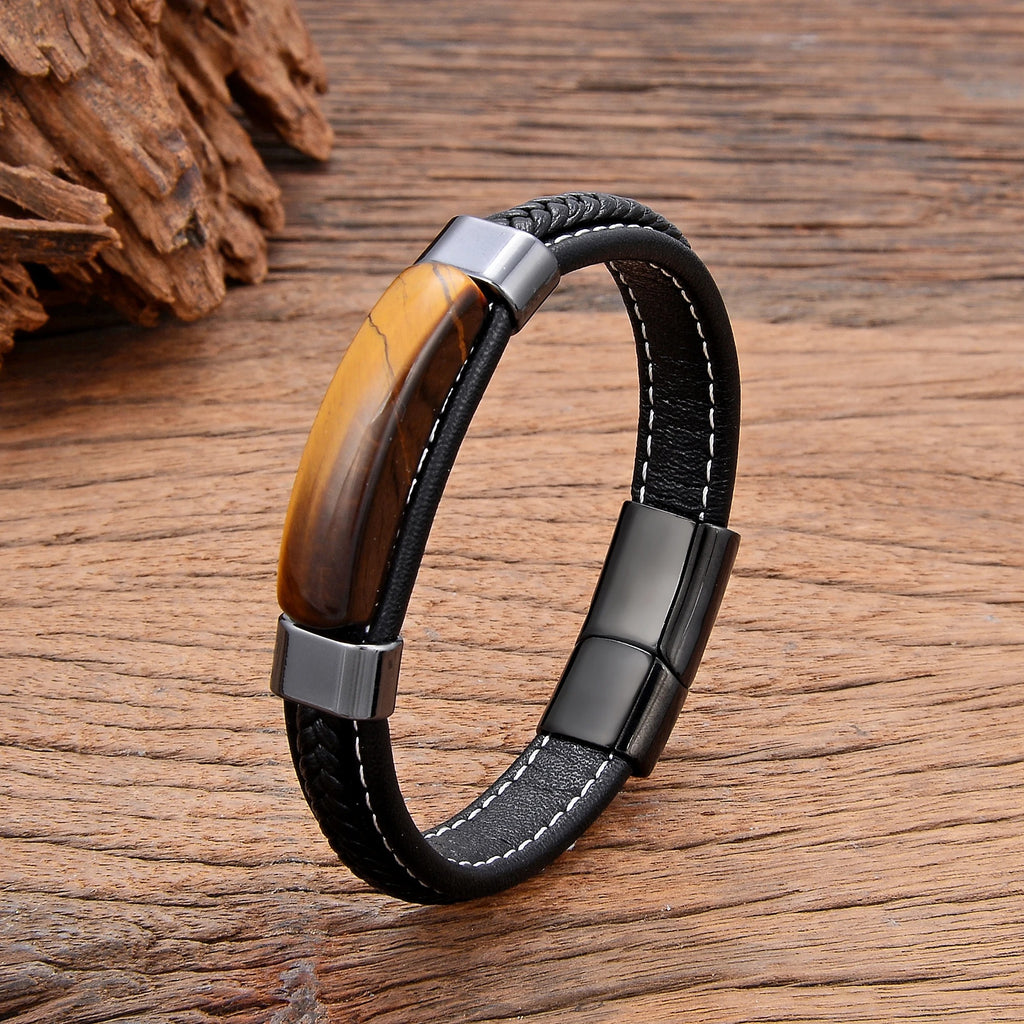 Pulseira Tauren | Couro Trançado & Pedra Natural