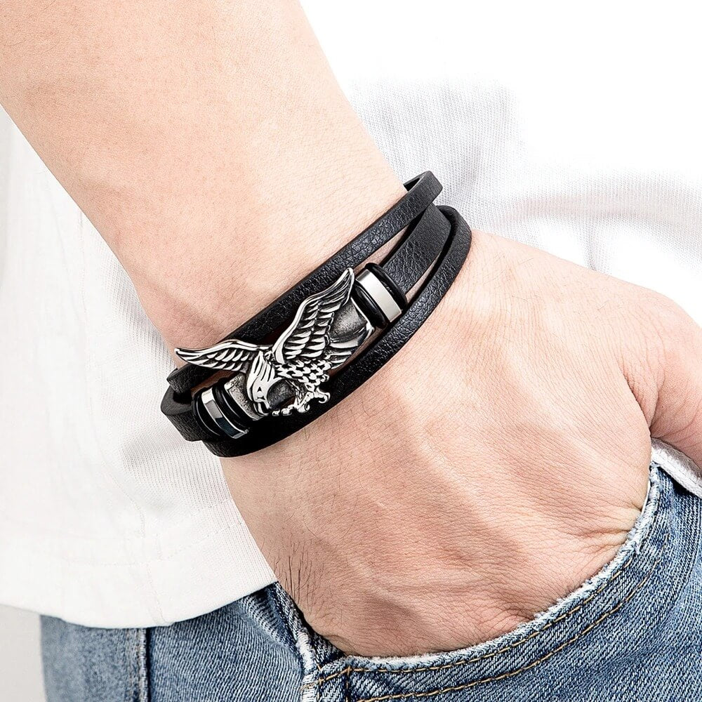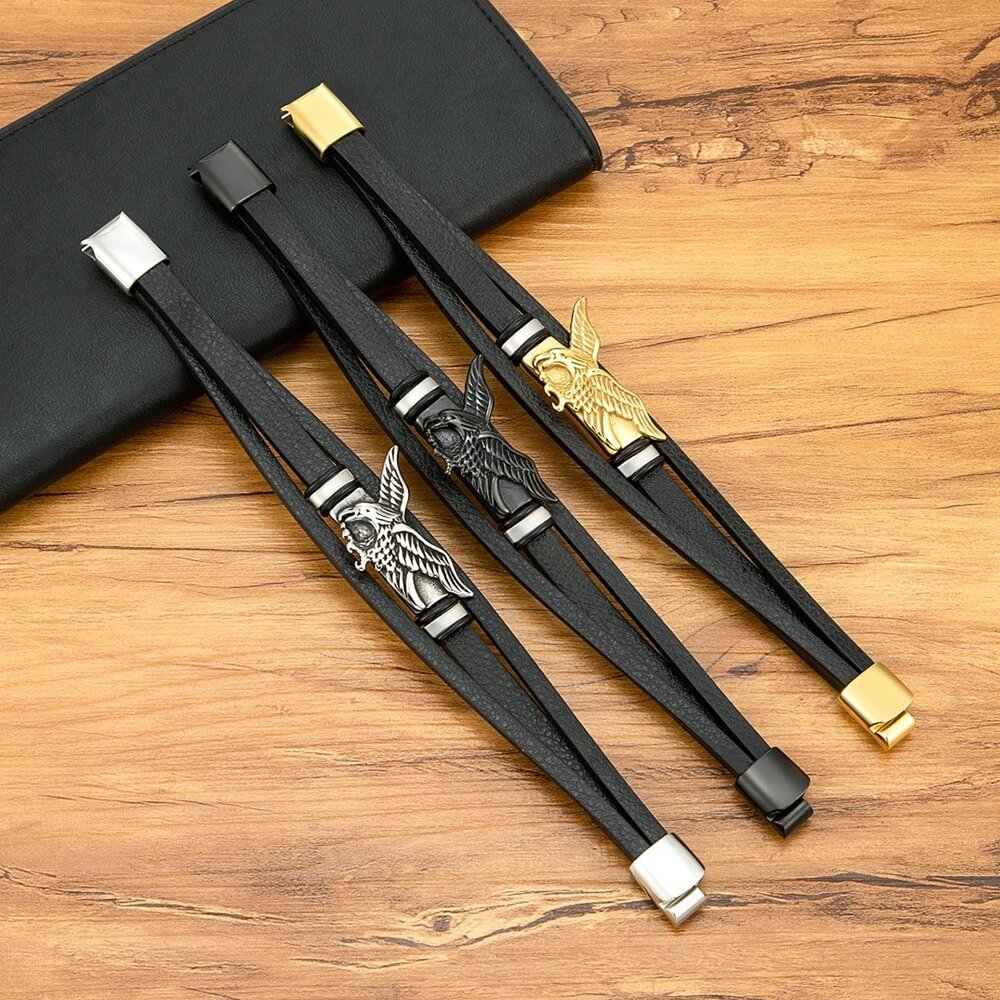 Pulseira Sky Hunter | Águia de Aço & Couro Triplo